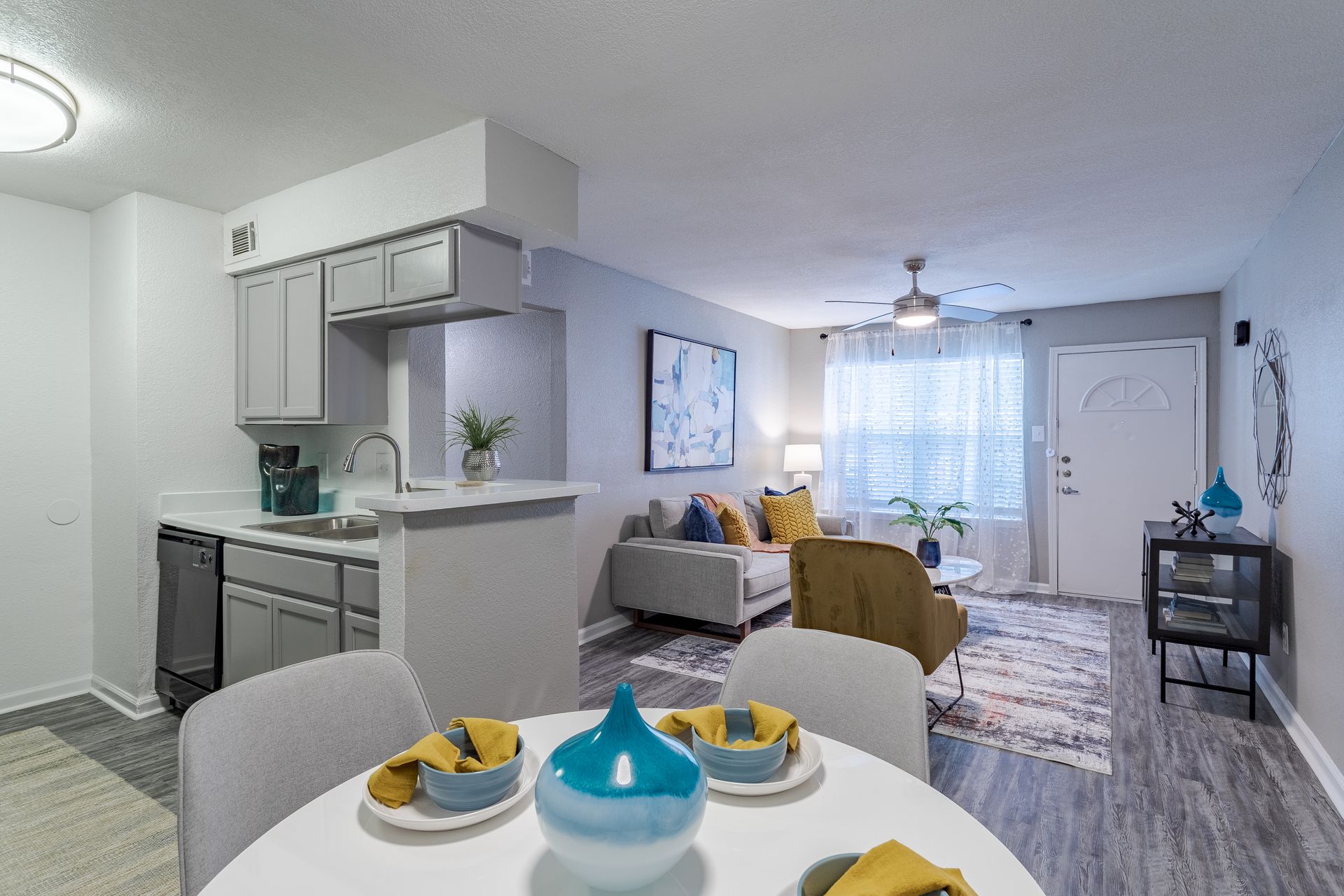 Quality standard amenities and many extra enhancements are what you will discover at Baystone Apartments in Webster, TX. We provide fully-equipped kitchens, central air and heating, a mirrored dining area, and two-tone paint, just to name a few!